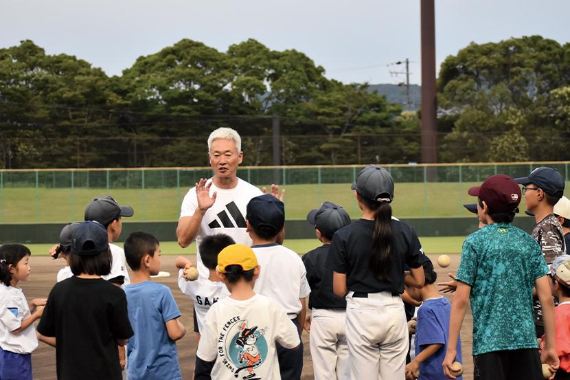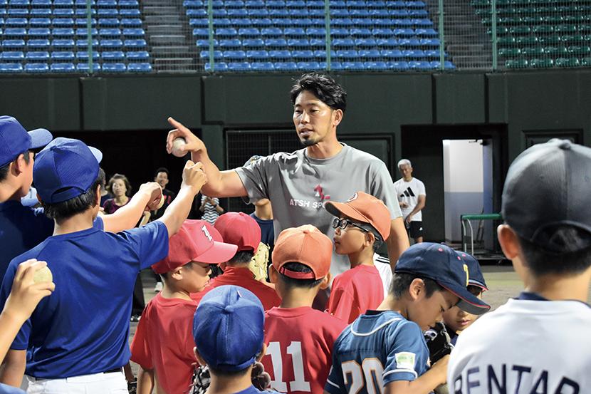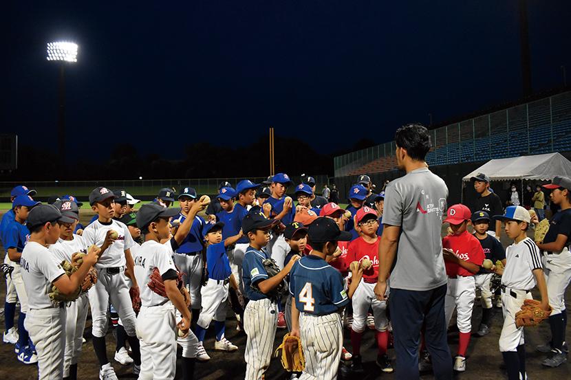 脳育運動は、小1から小6までを対象に、試行錯誤を繰り返すことで「自信」をつけ「自立」を促すプログラムとなっており、遊びのような動きを通して子どもたち自身が「考える力」が身につけられるように指導されていた。普段は違う競技を習っている子どもたちも一緒になって、頭をフル回転させながら参加している姿が印象的だった。クリニックは、小4から中3までを対象に、プロ野球で長年にわたり活躍してきた藤井淳志さんから、子どものうちに身体で覚えたほうがいい基礎の動きを教えてもらっていた。ボールの握り方から、ゴロ捕りやバッティングの基礎の大切さを子どもたちに分かりやすく何度も伝えていた。子どもたちに向けて藤井さんは「選手によっていろんな打ち方や動きがあるが、あくまで身体が大きくなってから自分らしくアレンジしているだけ。まずはこういった基本的な動きができるようにならないといけない」と話していた。子どもたちにとって素敵な時間になったことは間違いない。