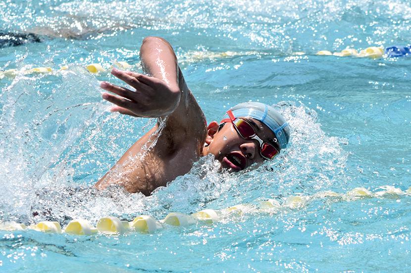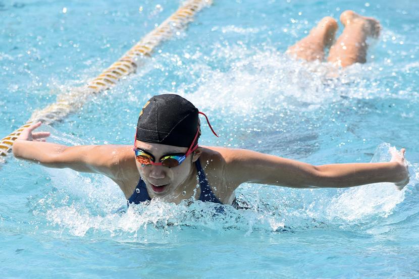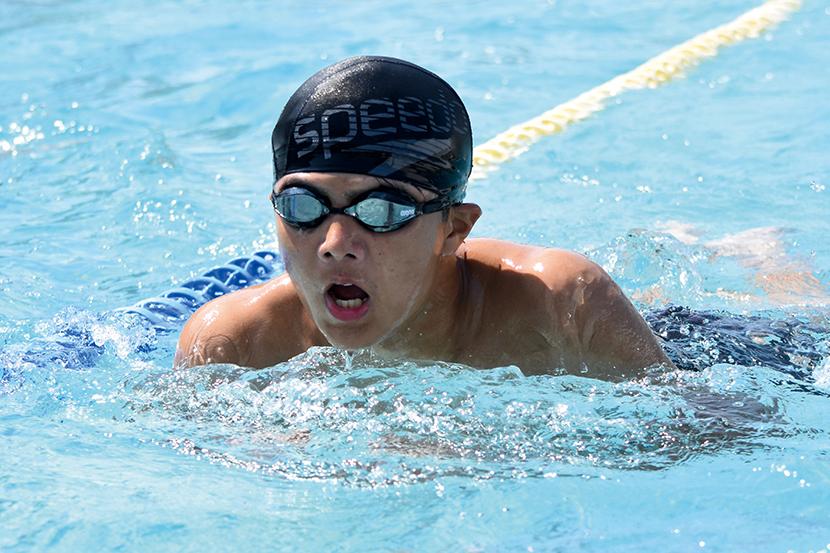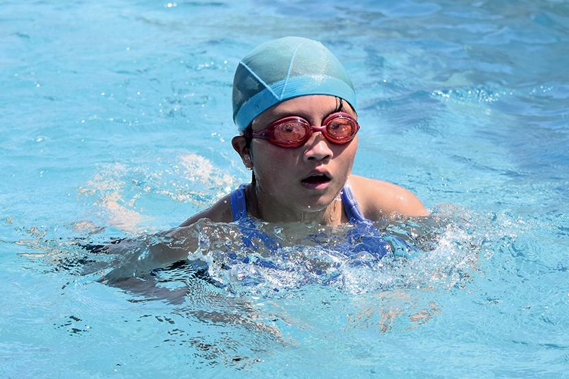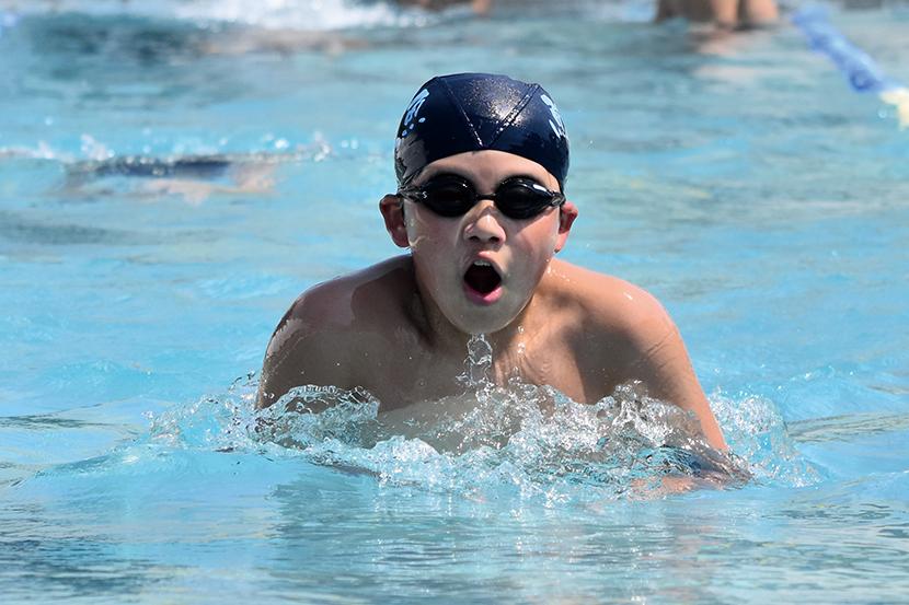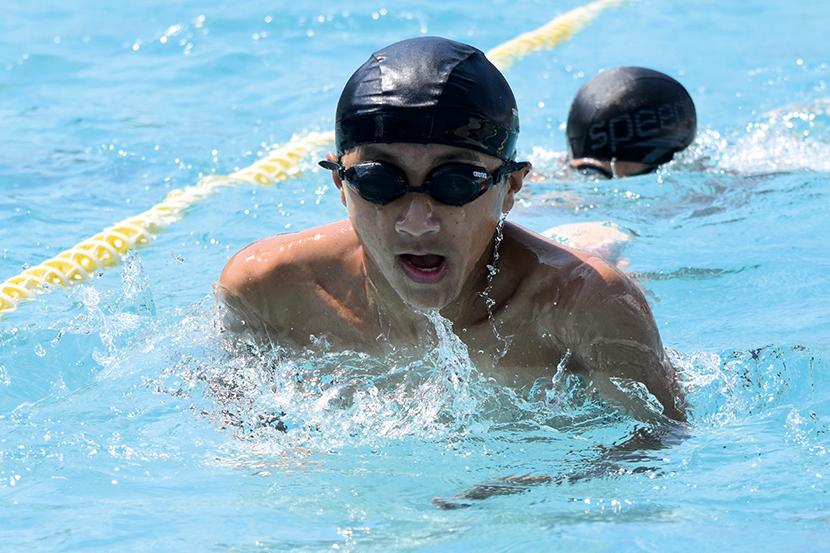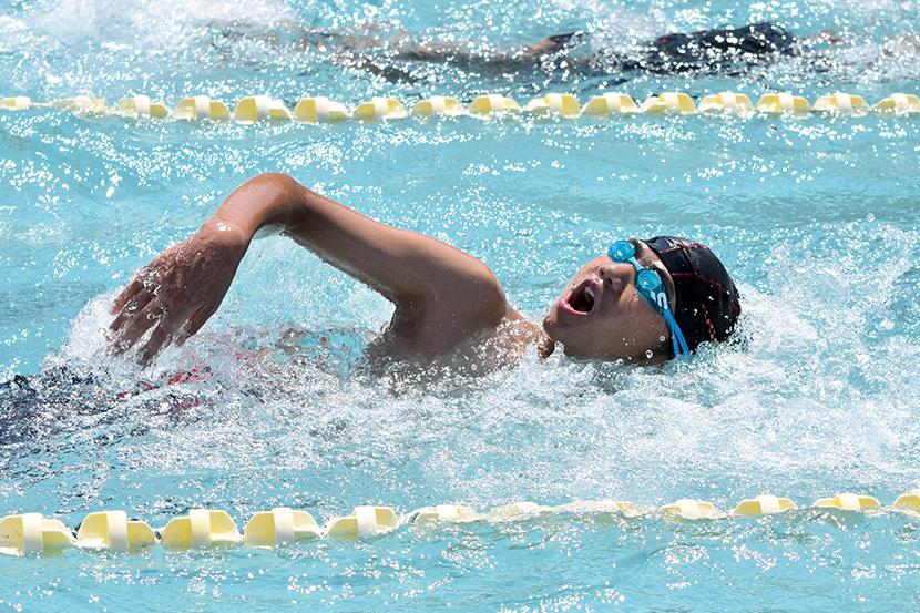 男子キャプテンの金城琉愛くんは「クロール100mが種目。バタ足を一定のリズムで続けられるように意識して泳いでいる。みんな優しくて、一緒に頑張る気持ちを上げてくれる子が多い」と話し、女子キャプテンの三浦大空さんは「水泳は個人種目が多いけど、リレーや練習では仲間を思い合うことができるところが好き。平泳ぎでは焦らずにしっかりと伸びることを意識している。最後の大会が近いので、自己ベストやより高い順位を目指して練習に励んでいきたい」と話してくれた。