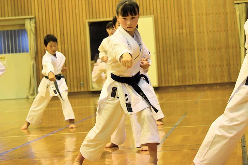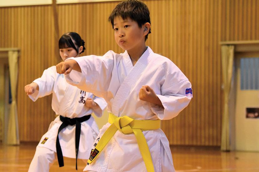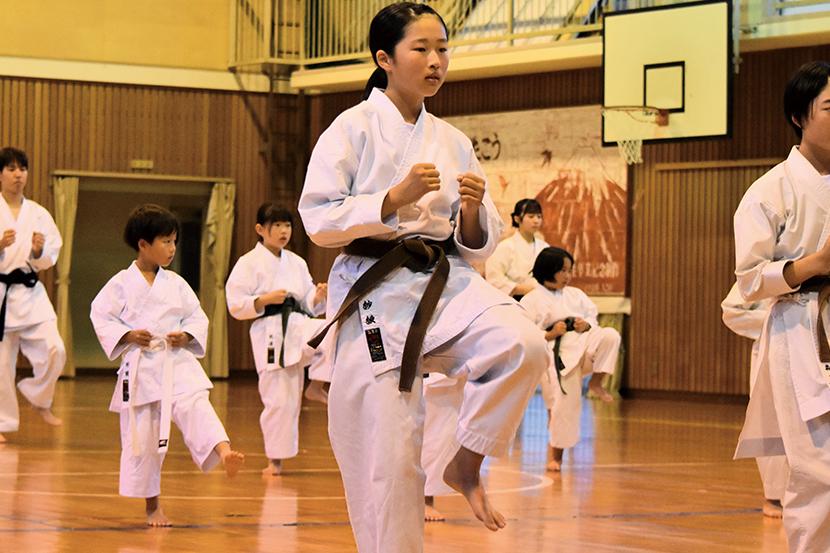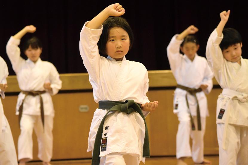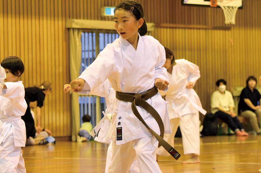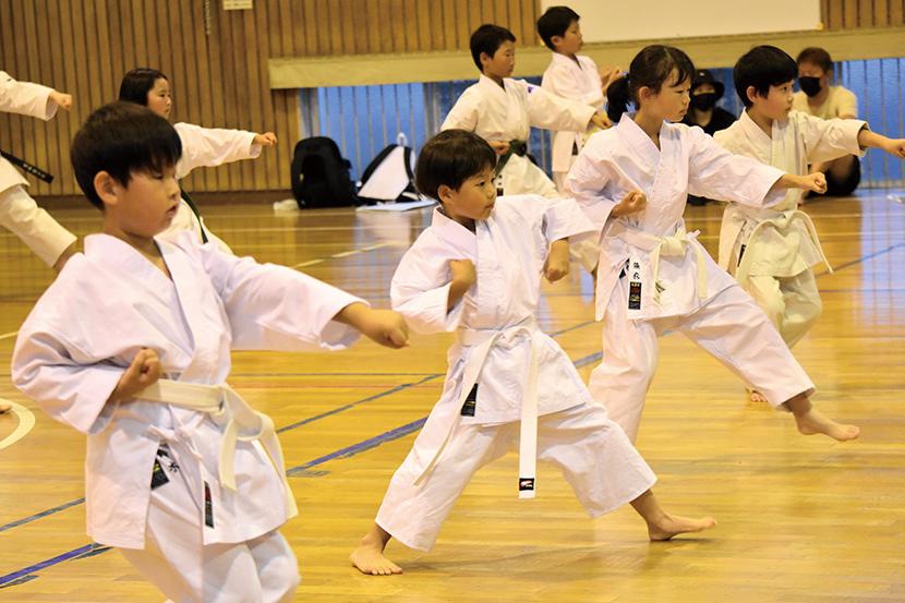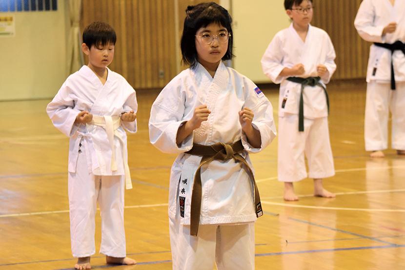 個人競技のため、スキルも目標も各々違うが、一人ひとり声をかけながら丁寧に指導を行う坂田先生は「基本をとにかく大事にしている。審査も形を打つにしても姿勢から教えており、そして元気よく声を出すことを伝えている」と話し、基本の反復練習中も一人ひとりの動きをよく見て声をかけるところが何度も見られた。みんなが口を揃えて先生に言われたことをしっかりできるように練習から意識していると話しており、自主練でも先生の言葉を思い出しながら鍛錬に励む子がほとんどだ。小1から空手を始めたという関根聡一朗くんは「声を出しながらやるところが楽しい。立ち方を整えることを意識している。今年中には2段を取ることを目標に頑張っていて、もっと空手が上手くなって色々な大会に出られるようになりたい」と話す。8月に開催される全国大会に出場する森井心結さんは「みんな仲が良くて楽しく空手ができている。下の子には自分が知っていることを教えてあげて、先輩たちから教えてもらっている。みんなでできるだけ試合に出て勝てるように練習に取り組んでいる」と話す。モチベーションを昇級・昇段審査や試合に合わせて練習を行っているが、その練習の先には我慢強く努力ができて、相手の気持ちを思いやれるメンバーになってほしいという。日本一を目指す子も、楽しく空手を続ける子も一緒に活動できるのは、ここにいるメンバーが互いを尊重しながら活動している何よりの証だ。