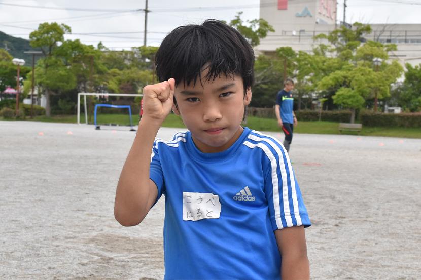 サッカーは頑張って勝つところが好きです。できないことができるように上達したいと思って練習を頑張っています。頭を使って作戦を練って戦える選手になりたいです。