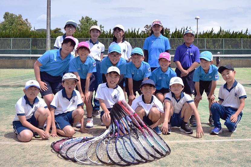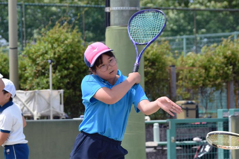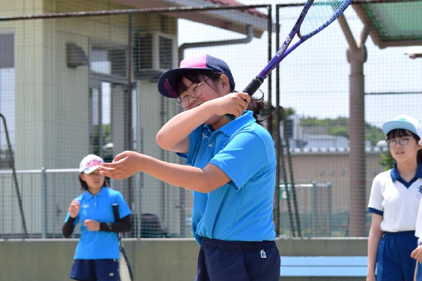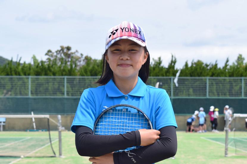 小学2年からソフトテニスを始めました。5年生でやめることも考えたけど、試合に勝つと楽しいから続けられています。今は県大会予選リーグ突破を目指して頑張っています。