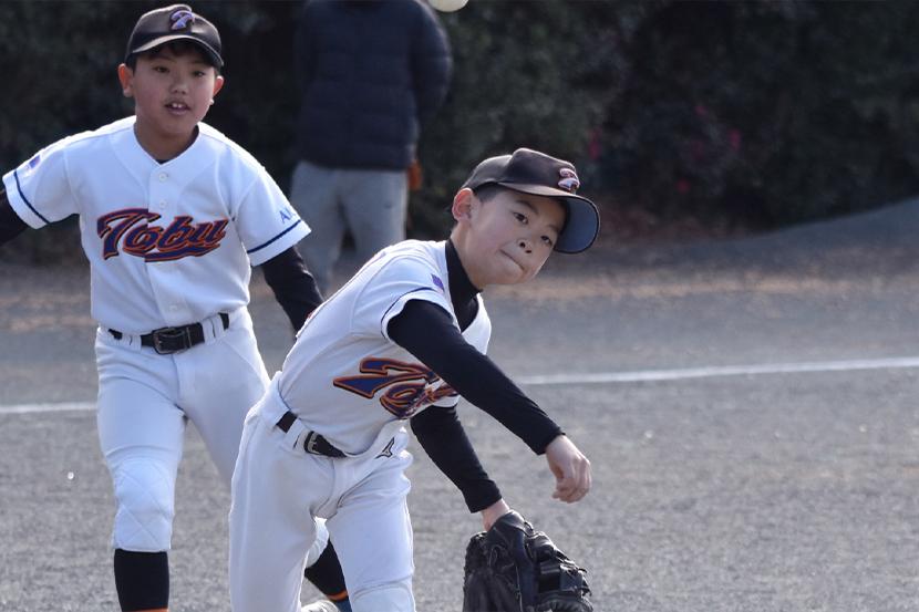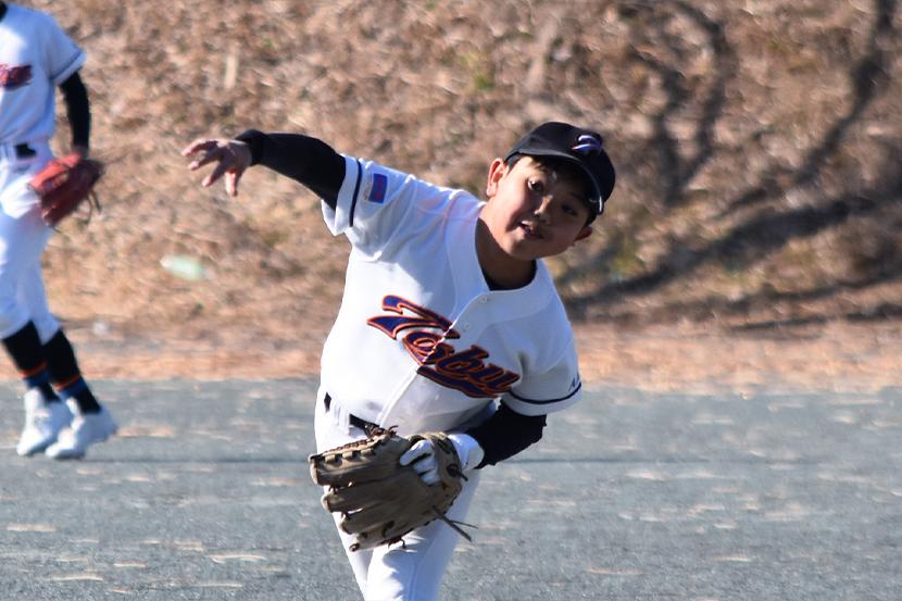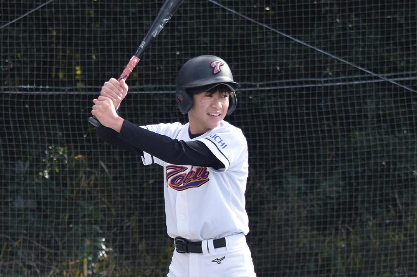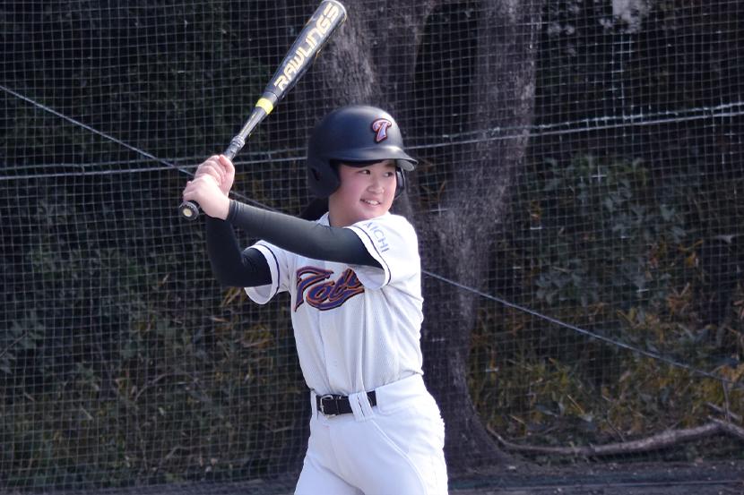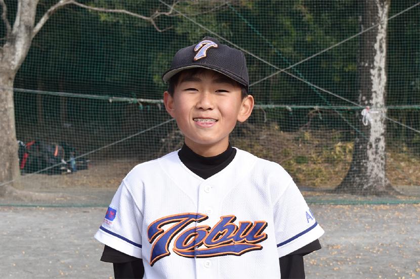 プロ野球を見て面白そうだと思って始めました。試合で打てた時やいいプレーをした時が嬉しいです。打撃時に力まないように練習をしています。中学でも先輩に負けないように頑張りたいです。