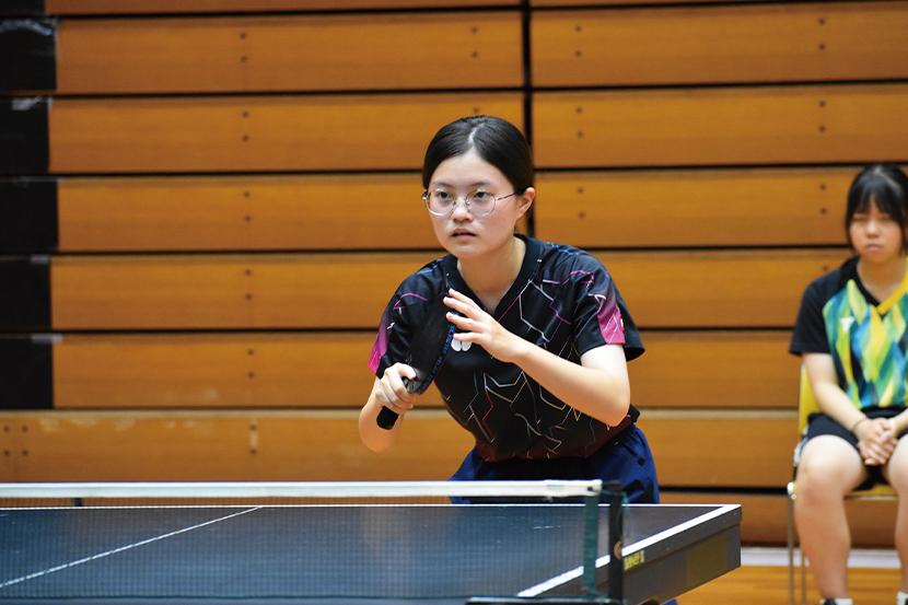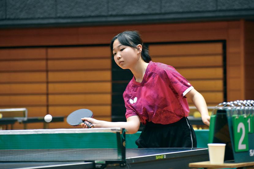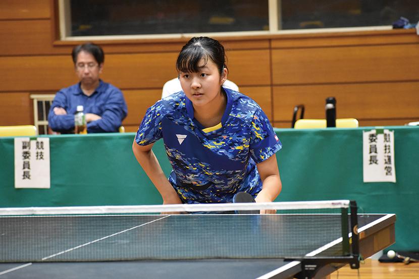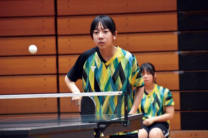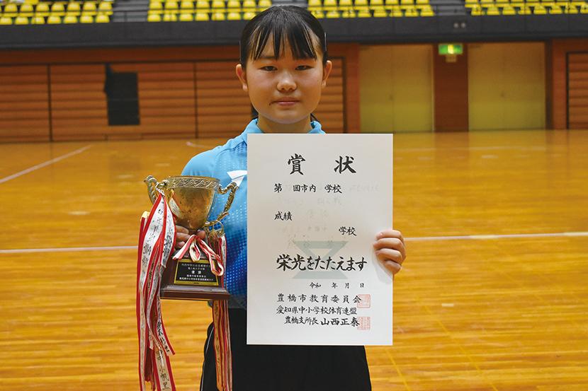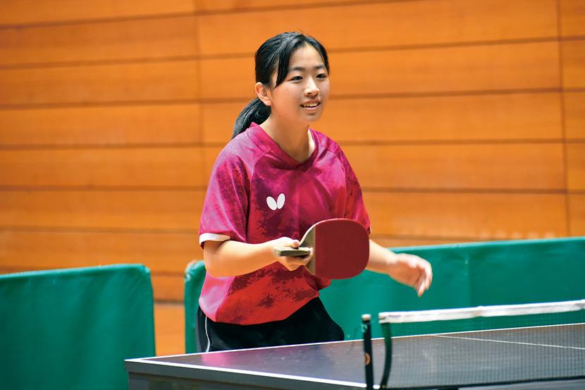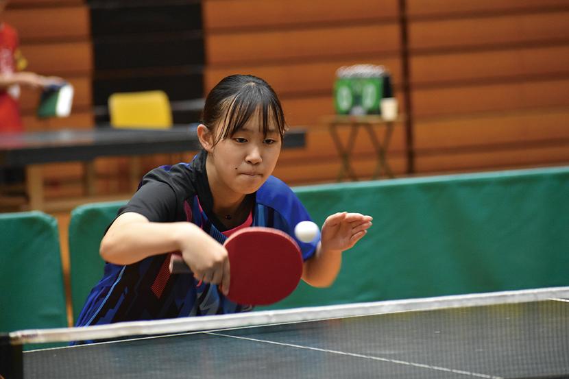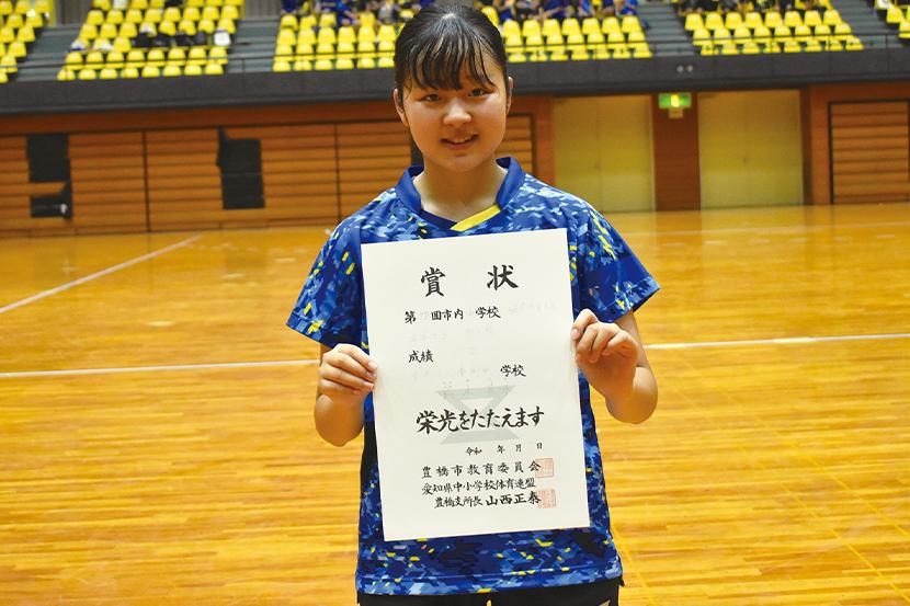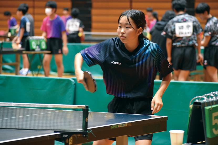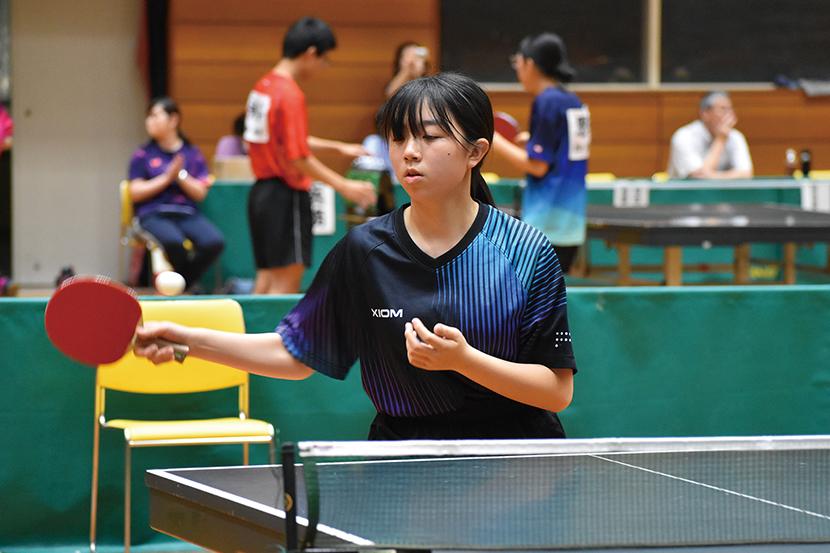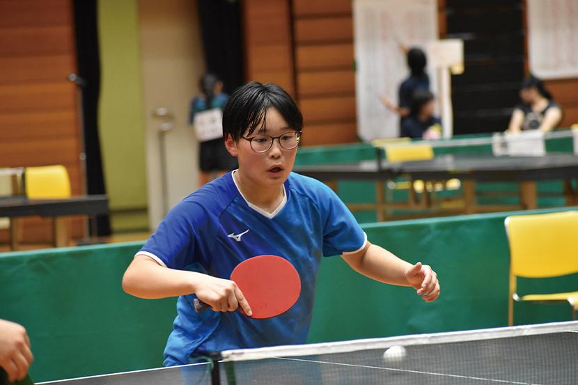108人の頂点を目指す卓球女子の決勝戦は、豊岡中の鈴木真未さんと東陵中の熊谷琴葉さんの戦いとなった。どちらもフルセットまでもつれた準決勝を制して決勝戦にやってきた。両チームの仲間がそれぞれに声を出して応援し、会場中がこの決勝戦の卓球台に視線を送る中、11対7で熊谷さんが第1セットをとった。第2セットは鈴木さんの強烈なスマッシュで追い上げる場面もあったが、結果的に11対8で熊谷さんが連続で2セット目も取り、優勝へ王手をかけた。鈴木さんも会場を沸かせるような好プレーが随所に見られたが、少しミスも出てしまった。続く第3セットも11対5で熊谷さんが獲得し、ストレートで試合が終了。決勝戦では1セットも落とすことなく、熊谷さんが優勝を決めた。優勝した熊谷さんは「準決勝では先に2セット取られてしまったが、そこから巻き返して決勝に進むことができた。決勝では準決勝の戦いも踏まえて、進んで攻撃できたおかげで相手のミスも増えたと思う。自分の流れで終始、試合を運ぶことができてよかった。ここからさらに勝って、東海大会に行けるように頑張りたい」と話した。