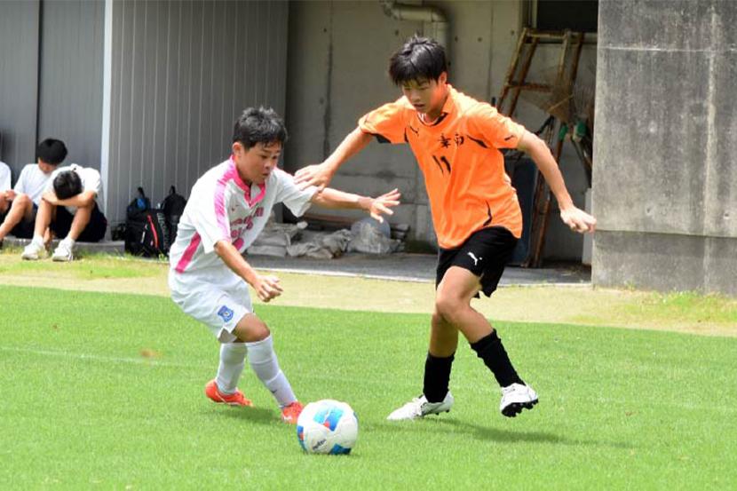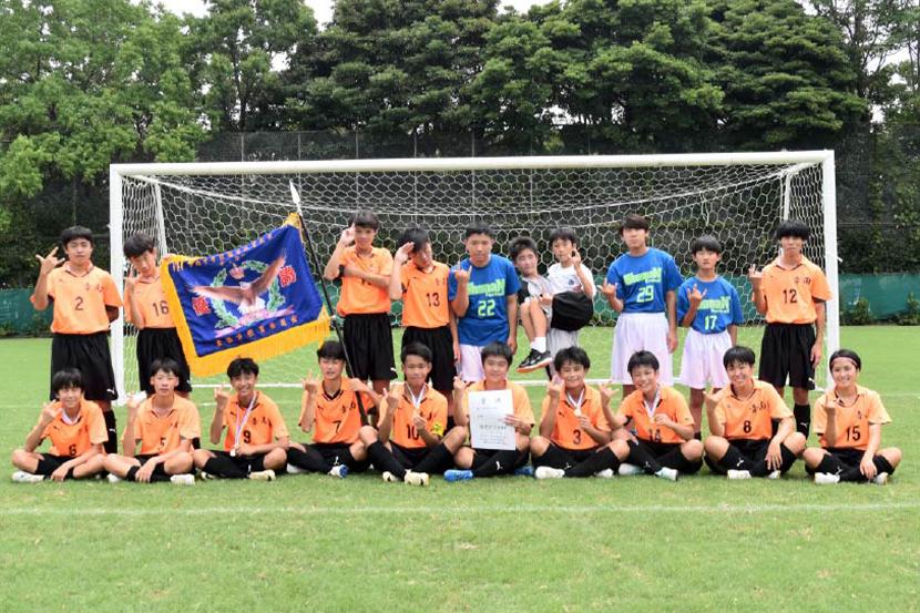 決勝戦は、青陵中と章南中の試合。章南中が前半に10番市川翔瑛くんのゴールで先制し、リードをする展開。青陵中は反撃の機会を狙うも、章南中が全員でボールプレスに行き、ボールを落ち着いて自由に持たせてもらえない。対する章南中はボールを奪うとすぐ前線へボールを入れていく。青陵中も必死のディフェンスで追加点は許さない。1対0のまま前半が終了。後半、スタートから今度は青陵中がアグレッシブに攻めていく。2本のコーナーキックを獲得するも得点には至らず。このプレッシャーにも負けず守り切る章南中が徐々にディフェンスラインを上げていき、攻めるタイミングを探していく。一瞬の隙をつき、章南中11番佐久間颯人くんのゴールで追加点を獲得。追加点を獲得しても攻撃を緩めない章南中は、7番鈴木朔駕くんがさらにゴールを決めて、青陵中が追い上げる隙を与えない。3対0で勝利し、優勝を収めた。勝利した章南中の村田先生は「青陵中とは何度も対戦し、春には負けていた相手。相手の特長を生かさないように自分たちでミーティングをしてチャンスで決めることができた」と子どもたちを褒めた。