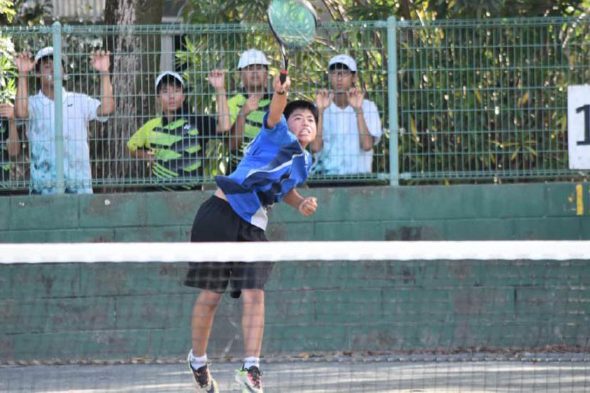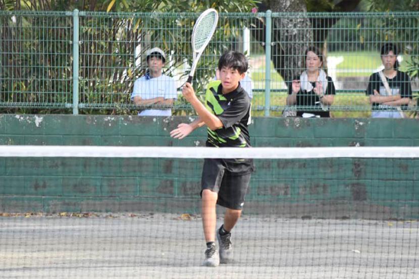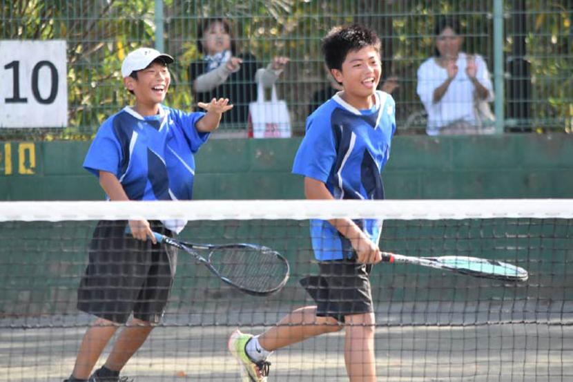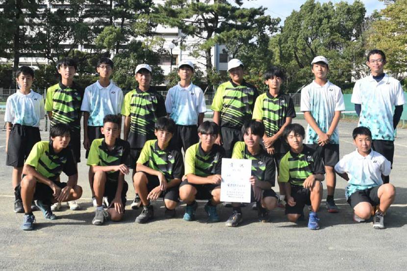 ソフトテニス男子の決勝戦は豊城中と青陵中の決勝戦となった。関口&竹内ペア、高橋&佐藤ペア、歌川&鈴木ペアで挑みそれぞれの良さがしっかりと発揮できた大会だったと顧問の秋山先生は子どもたちを褒めながら決勝戦を振り返った。キャプテンの鈴木くんは「準決勝、決勝は試合がなかったが、応援で仲間を後押しできたし、それまでの試合で自分たちらしいプレーができた。今後はプレー中にもペアと声を掛け合い、ミスもリカバリーしていける選手になりたい」と話し、副キャプテンの歌川くんは「自分たちがピンチの展開の時には先に仲間が勝ってくれたので、仲間に助けられた大会だった。今度は自分たちが引っ張っていきたい。今後も東三河大会、県大会と出られるように努力していきたい」と意気込んだ。二人の連携を意識しながらコンビネーション良く戦い、自分たちのペースで試合ができた部分もあったが、まだ上の戦いを見据えた二人のコメントに頼もしさを感じた。秋山先生は「夏の大会は東三河大会で負けてしまった。県大会でも活躍できるように自分たちの強みを理解した戦いができるようにしていきたい」と勝って兜の緒を締めた。