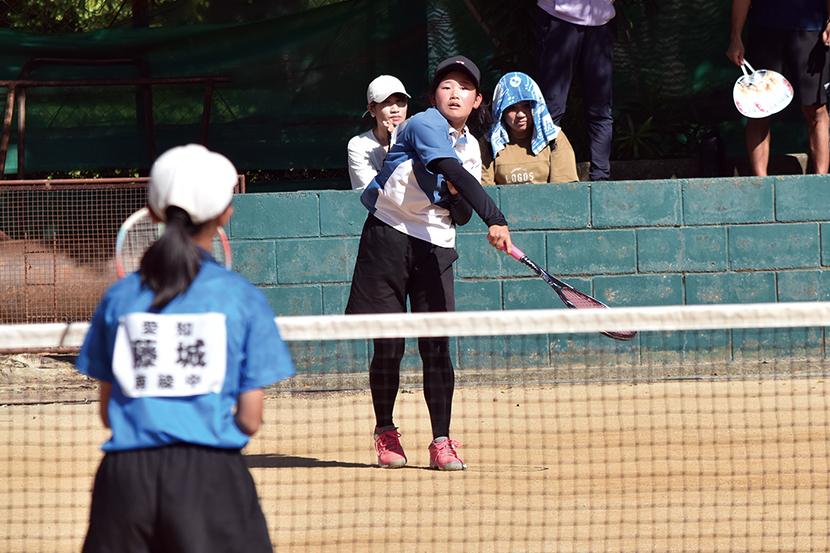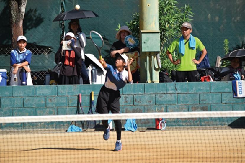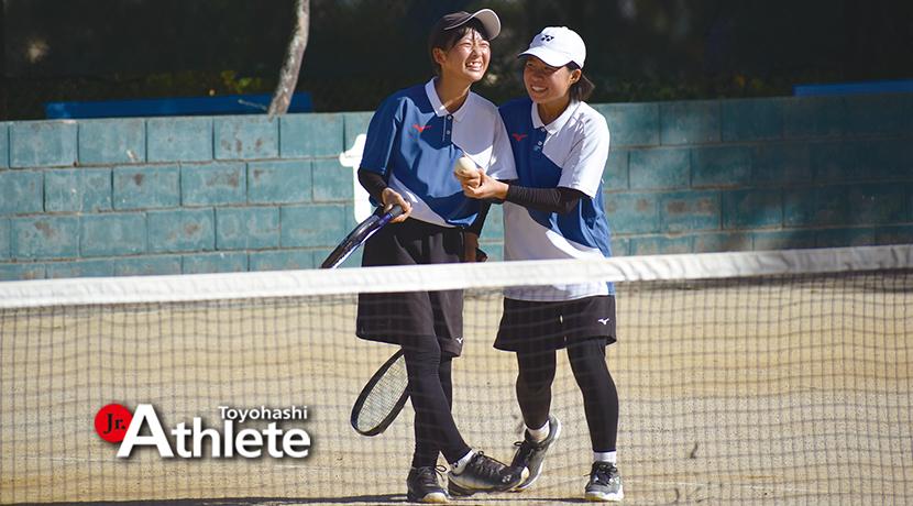 互いにポイントを取り合う好ゲームが続いたが、最後は章南中Aが競り勝ち見事市内新人戦優勝を果たした。章南中テニス部は日頃から土日のクラブを指導するコーチと学校の部活動の顧問の先生とが互いに協力し合い活動しているという。クラブの沖尾コーチは「今年のチームはとても元気がよくポジティブなチーム。基本練習をコツコツと続けてきた。新人戦では目の前の勝ちをまずひとつずつ獲ろうと指導してきた結果、優勝できて良かった」と話してくれた。キャプテンの田中桜愛選手(2年生)は「リードされることも何度かあったけど、その都度ペアと話し合い励まし合って勝つことができたことが嬉しい」荒川美優選手(2年生)は「チームで互いに応援しあって勝てた。東三大会でもいい結果を残したい」と話してくれた。