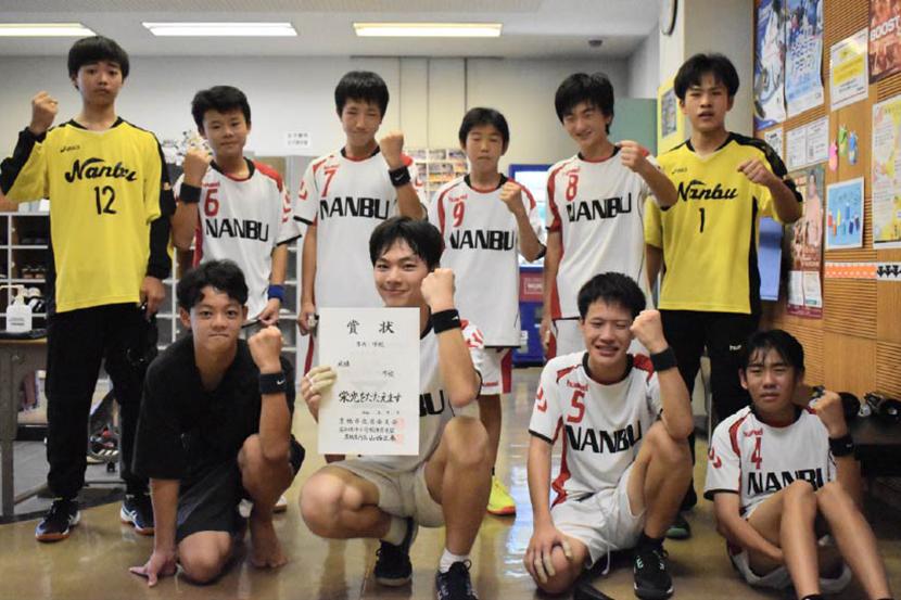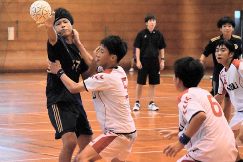 男子決勝は東部中対南部中。東部中は今大会を第一シードで、南部中は第二シードで臨んだ。先制したのは東部中。ダイナミックなシュートで先制し、試合の入りで勢いをつけたかと思われたが、南部中がその後連続得点で流れを渡さず。さらに東部中の連携ミスから得点を重ねた。対する東部中はどうにか離されまいと粘りの守りを見せた。前半は互いに譲らず膠着状態が続き、5対9と南部中のリードで折り返した。後半、またしても先制したのは東部中。試合展開は前半と同様に膠着状態が続いた。後半早々、南部中のキーパーにアクシデントが発生。その隙をついて東部中が詰め寄り、ついに同点に追いつく。その後も一進一退のまま試合が進むも、最後まで走り続けた東部中が17対14で優勝旗をつかみ取った。試合後「まだまだ修正点が多い。本来ならもっと点が取れた試合だった」と監督からは厳しい言葉が聞かれた。キャプテンの鈴木くんも「もうちょっとやれた。東三河大会では今日の反省を生かし優勝を目指したい」と課題と抱負を語ってくれた。東部中男子ハンド部の今後の成長が見逃せない。