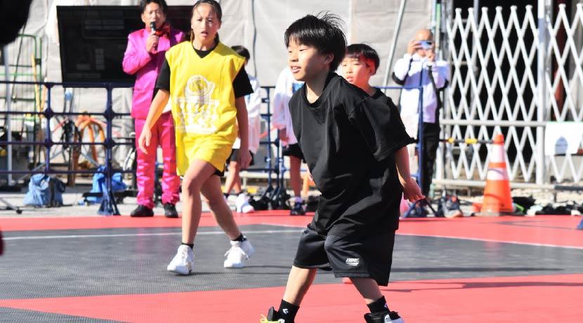 初開催で反響を呼んだストリートフェスin FUKUE。今回の3X3は小学生の部、中学生の部、高校生・一般の部に追加して女性の部が新設されて行われた。そのうち、小学生の部・中学生の部を中心に取材した。