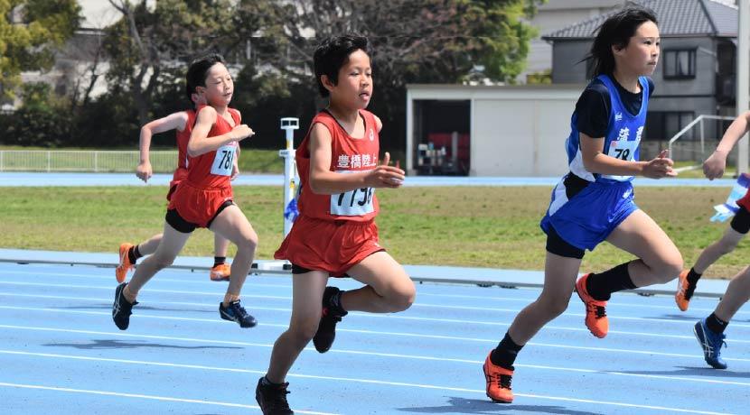2025年4月19日、豊橋陸上競技場で、冬の鍛錬の成果を試すため、東三河の小中学生が合同記録会を行った。