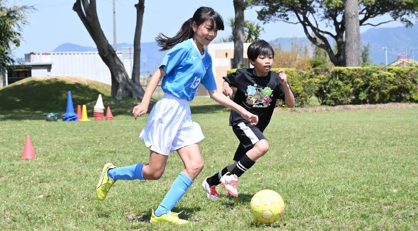 土曜日2時間、日曜日3時間と練習時間が限られている中、クラブ活動のようにスキル練習よりもサッカーIQが身につけられるようにと、サッカーの知識と基礎を中心に教えているという。プレー中の選択肢を教えて、チームとしてどうやって試合に勝っていくのか考えられるチームを目指している。少年団はレベルも様々な子どもたちが集まっているため、ただ強くなれればいいというよりも規律や仲間意識も大切にし、サッカー以外の目標を子どもたちに考えさせており、学校や社会に出ても必要な人になれるように指導しているそうだ。副キャプテンの都築岳くんは「友達に誘われて、サッカーを始めた。小学生のうちに悔いのない結果を出せるように練習を頑張っている。チームに流れを持ってこれるような声を出せるプレイヤーになりたい」と話してくれた。同じく副キャプテンの小神結花さんは「チームで一緒に戦うところがサッカーの魅力。今練習しているリフティングが50回以上できるようになりたい。そして、守備がうまくて相手に抜かれない選手になりたい」と話してくれた。時間が短いからこそ、細かく練習の意図を伝えながら教えているという高盛監督は「人として、サッカー人として育ってほしい。ここに通ってよかったと思えるような場所にしてあげたい」と話す。前向きにサッカーに取り組む姿勢が仲間へ伝播し、目標達成を目指して頑張ってほしい。