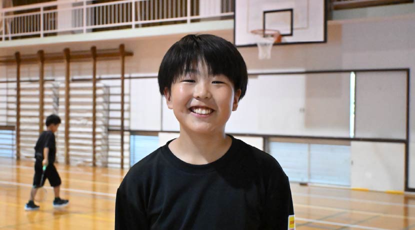 小学5年から始めた。ラリーが続くとすごく楽しい!得意なレシーブや特訓中のショットをしっかり決められるように、家でもグリップの握り方を意識して練習している。