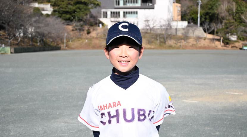 小学2年生の春、友だちと父の勧めで野球を始めた。チームで団結して戦えるところが魅力。キャプテンとして誰よりも声を出し、守備で投手を安心させられるよう練習している。