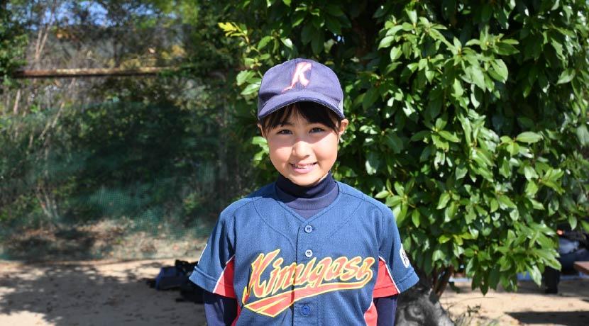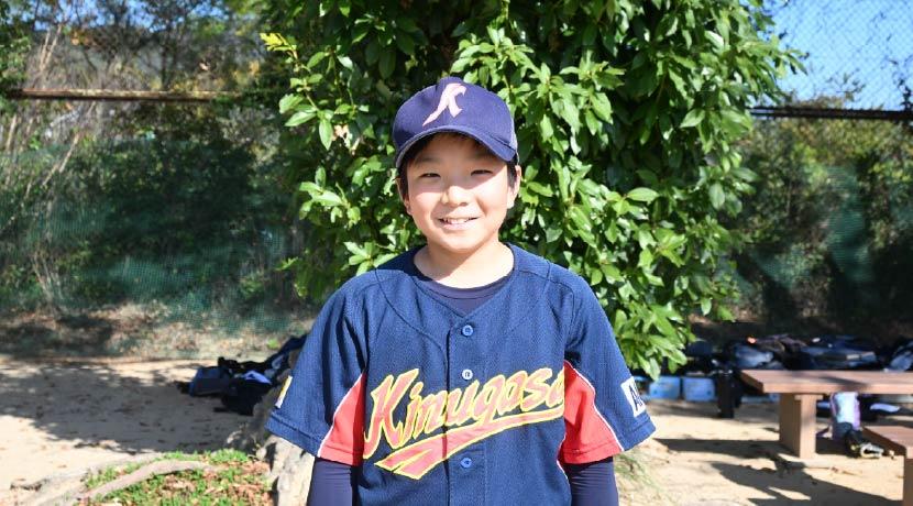 祖父と野球を見に行ったことがきっかけで野球を始めた。バッティングが好きで、遠くに飛ばすことが楽しい。今は苦手なフライが取れるように父と練習を重ねている。