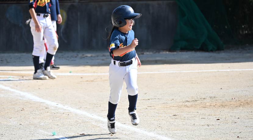 衣笠スポーツ少年団軟式野球部の指導方針は、『野球を楽しむこと』『挨拶を率先して行うこと』『礼儀を大切にすること』。人として成長することも大切な指導の一つとして、日頃から選手に伝えている。来年度の新チームは、新6年生3名・5年生3名・4年生5名という学年をまたぐ編成になる。なかでも注目は新6年生。女子2名・男子1名と人数こそ少ないものの、下級生をまとめながら勝利にこだわる姿を期待している。チームは、市内大会優勝を目指して日々練習に励んでいる。新チーム単独での練習はまだ始まっていないが、まずは課題であるメンタル面を強化し、一つひとつ勝利を積み重ねていきたい。