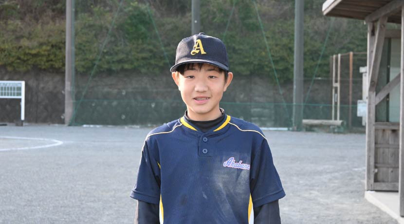 テレビの放送を見て興味を持ち、野球を始めた。野球が楽しいと感じるときはバッターで長打を打ったとき。キャプテンとしてたくさん声を出し、チームを盛り上げたい。