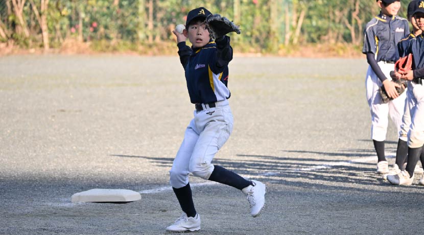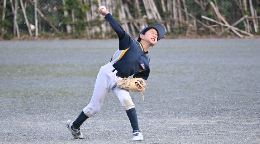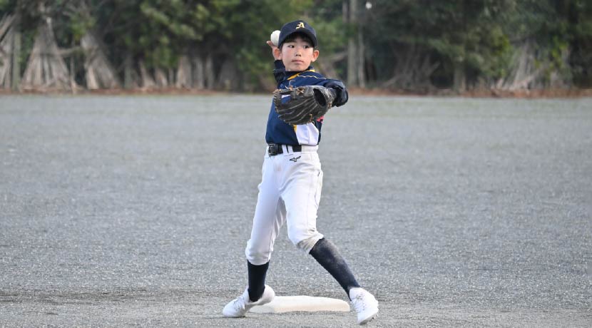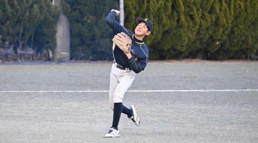 父が野球を見ていて影響され、小学4年生の春から始めた。みんなで協力して戦うことが野球の楽しさ。バッティングで結果を出すために、力をつける練習に取り組んでいる。